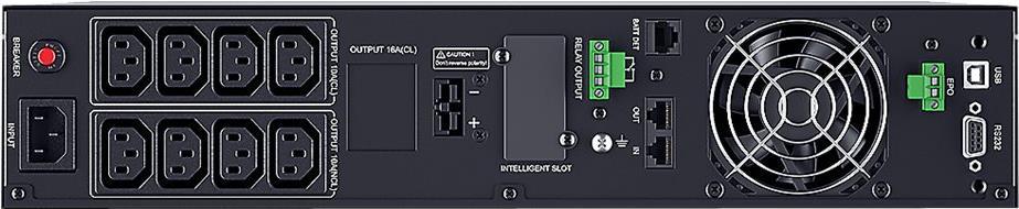 Die USV verfügt über eine Farb-LCD-Anzeige, über die der Benutzer das Stromversorgungssystem überwachen und Einstellungen einfach konfigurieren kann. Daneben steht für Sonderanwendungen eine Relais-Trockenkontaktschnittstelle zur Verfügung. Diese Modelle haben eine automatische Erkennung von extern angeschlossenen Batteriemodulen um automatisch die Anzahl der angeschlossenen Batteriemodule (EBM) zu erkennen und so eine korrekte Laufzeit der USV anzuzeigen. Die drehzahlvariable Lüftersteuerung bietet durch das automatische Wärmemanagement auf der Grundlage der Belastung eine reduzierte Geräuschentwicklung.