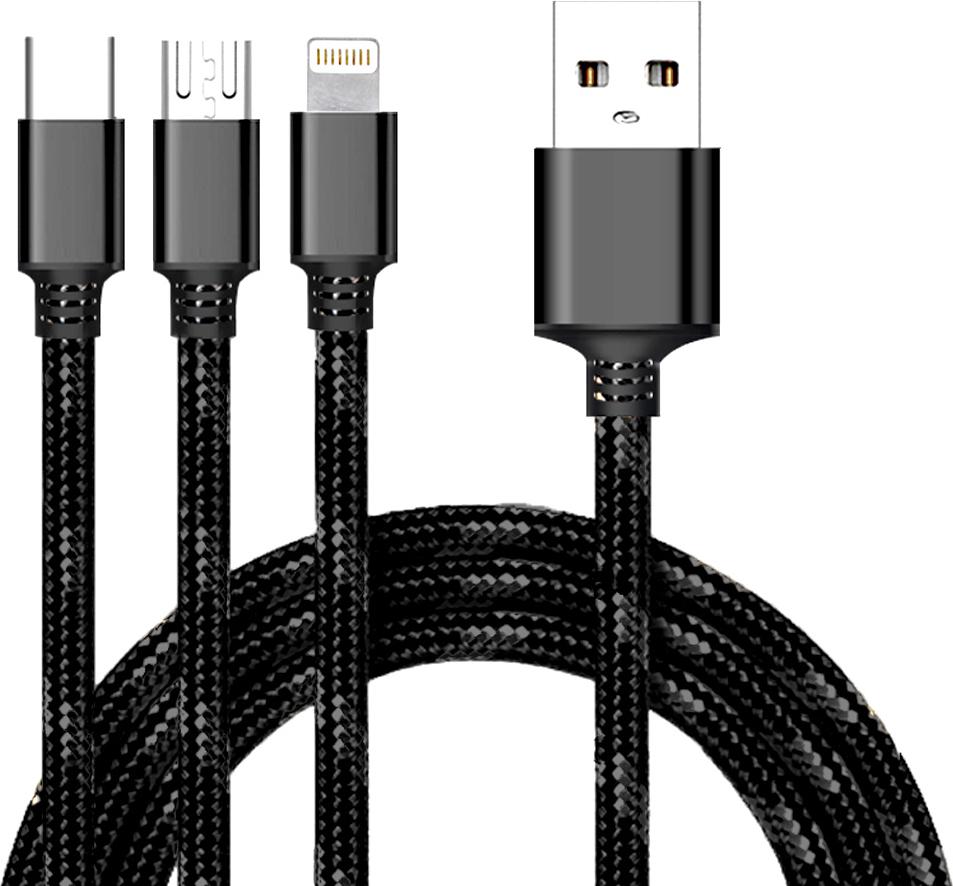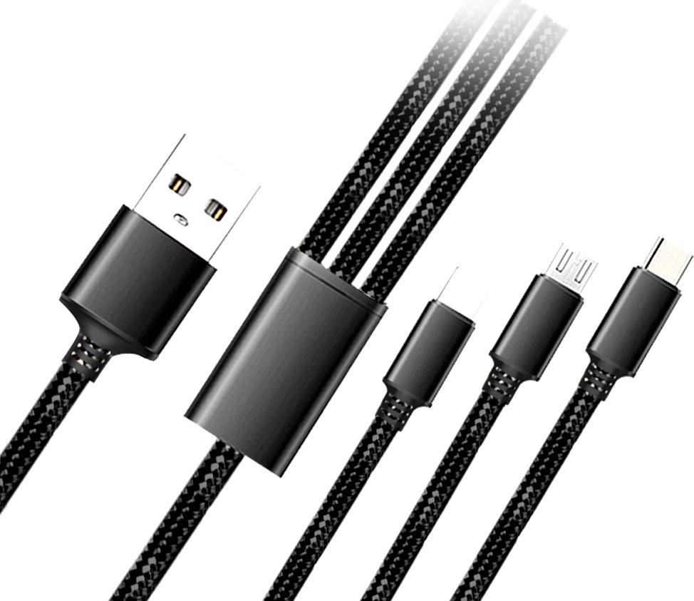 Cyoo - 3in1 USB Ladekabel + Datenkabel - Micro USB, USB Typ-C und Lightning - Schwarz