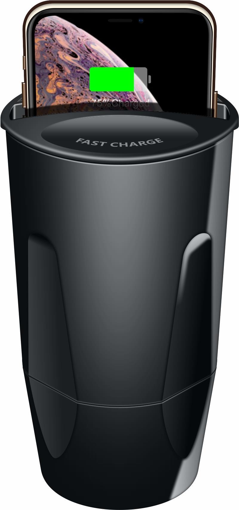 Cyoo - Cup Wireles Charger - Schwarz - Ladestation kabellos Qi KFZ PKW LKW Womo Ladegerät (CY122326)