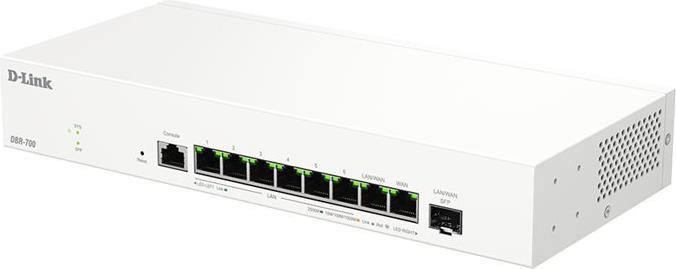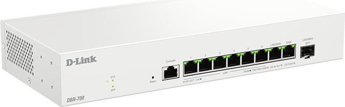 Der D-Link DBR-700 ist ein WLAN-Router, der im Standalone-Modus bis zu 15 verwaltete Access Points unterstützt und sich somit für kleine und mittlere Unternehmen eignet. Mit einem robusten Betriebstemperaturbereich von 0 °C bis 40 °C und einer hohen Feuchtigkeitsbeständigkeit gewährleistet er eine zuverlässige Leistung in verschiedenen Umgebungen. Der integrierte 7-Port-Switch und mehrere Anschlussmöglichkeiten, darunter 2,5-GBase-T-Ethernet-Ports, bieten nahtlose kabelgebundene und kabellose Verbindungen für alle Ihre Geräte. Ausgestattet mit einer Reihe von Sicherheitsfunktionen wie WPA3-Personal-Verschlüsselung und DDoS-Schutz bietet dieser Router Sicherheit und gewährleistet gleichzeitig die Netzwerkleistung.