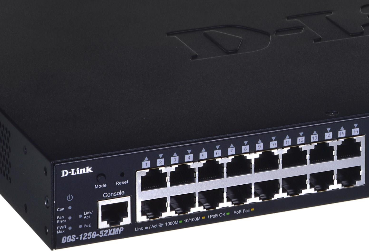 | Produktbeschreibung | D-Link DGS 1250-52XMP - Switch - 52 Anschlüsse - Smart - an Rack montierbar |