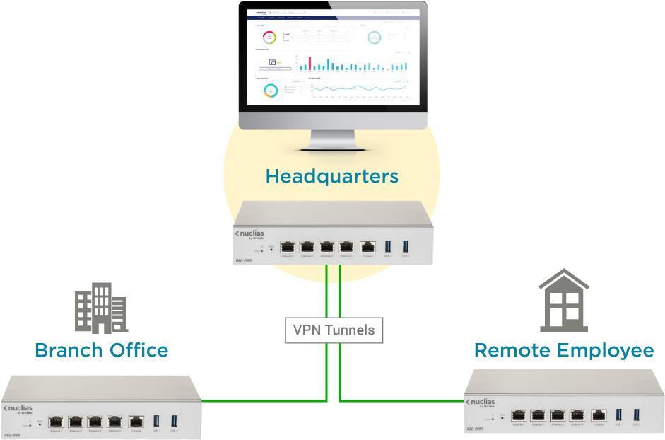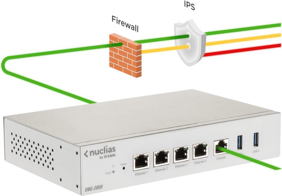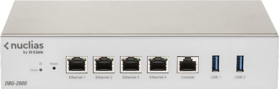 D-Link Nuclias Cloud SD-WAN Gateway, Nuclias Cloud-verwaltetes SD-WAN Gateway, 4x10/100/1000Mbps ports, 2* USB ports, 1 RJ-45 console port, Quad-core CPU, DDR3 2GB memory, Firewall/NAT throughput: 1.8Gbps, IPsec VPN throughput:450Mbps, IPsec Throughput : 450Mbp (DBG-2000)