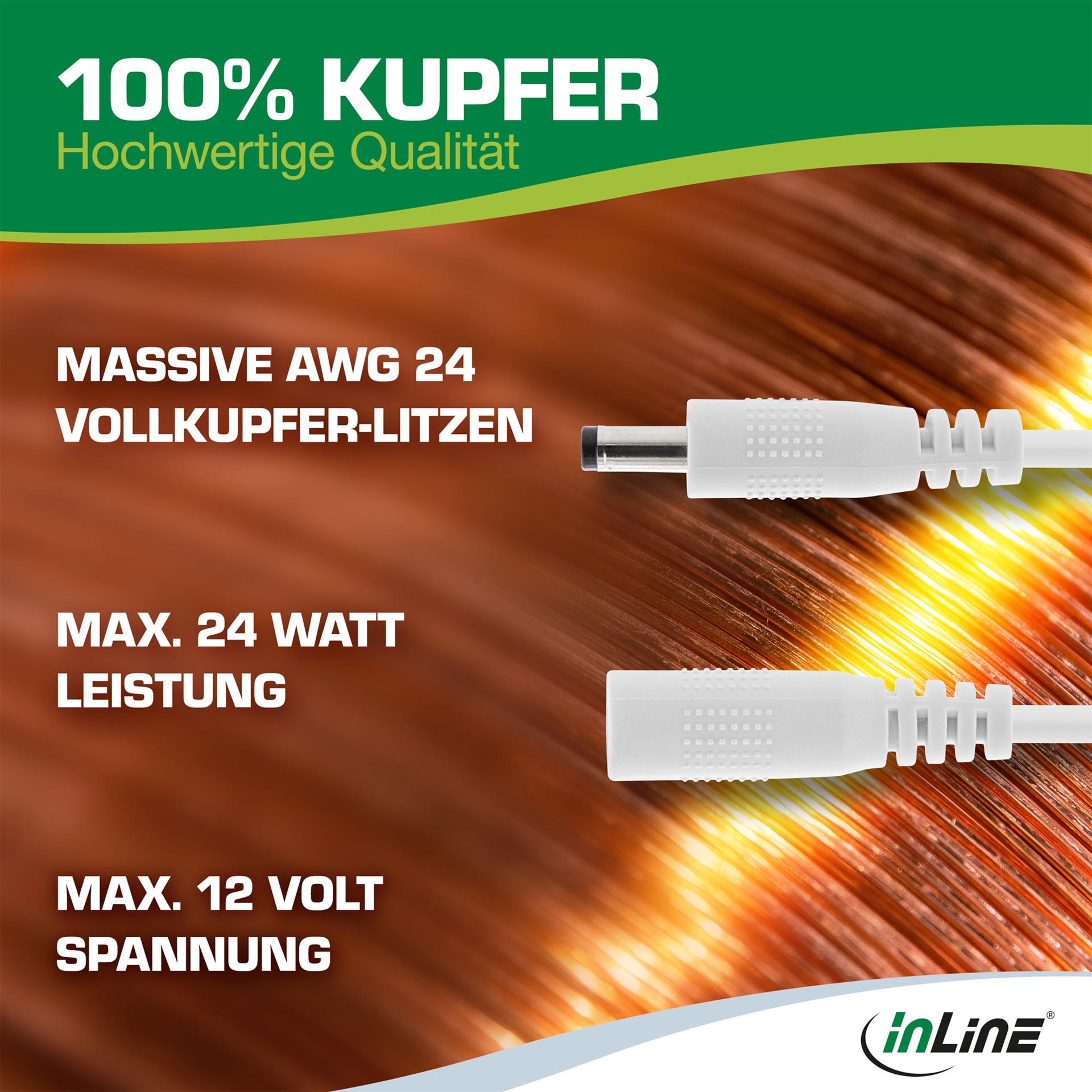 InLine® DC-Stecker-Verlängerungskabel,• Innenleiter: Kupfer AWG 24