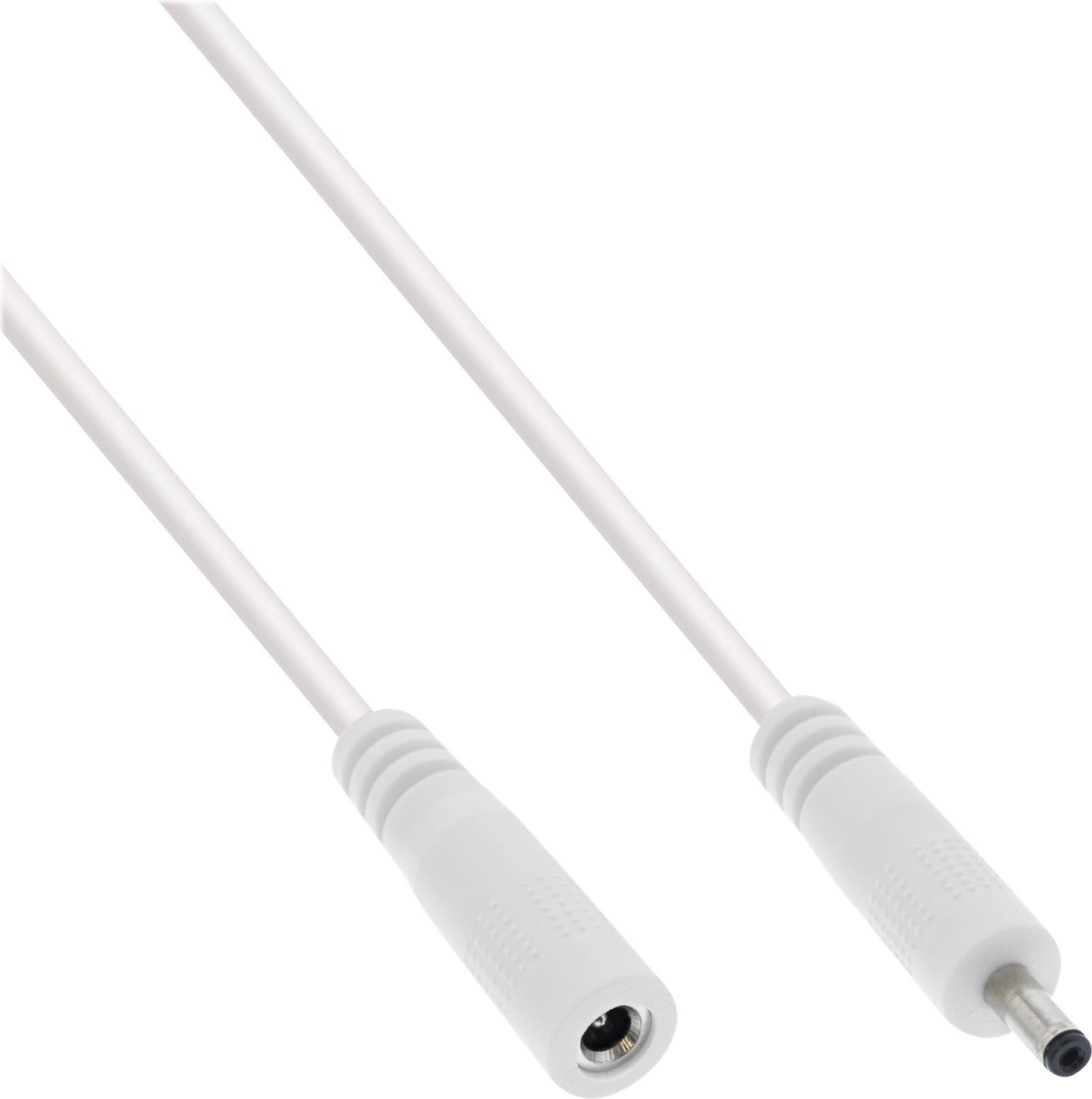 InLine® DC Stecker Verlängerungskabel, weiß• Innenleiter: Kupfer AWG 18• DC Stecker/Buchse: 3,5x1,35mm• max. 12V/11,6A (140W)