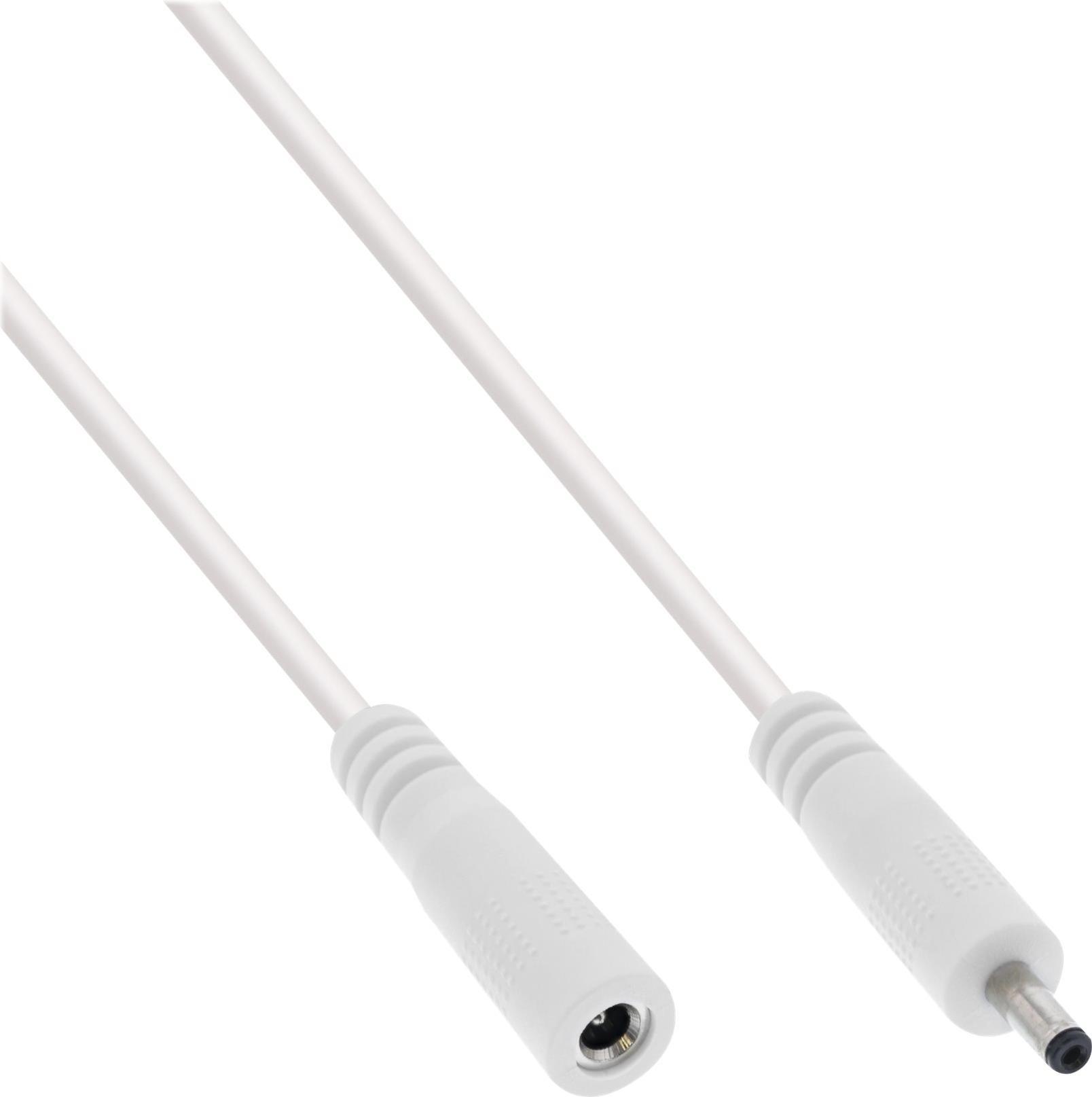 InLine® DC Stecker Verlängerungskabel, weiß• Innenleiter: Kupfer AWG 18• DC Stecker/Buchse: 3,5x1,35mm• max. 12V/11,6A (140W)