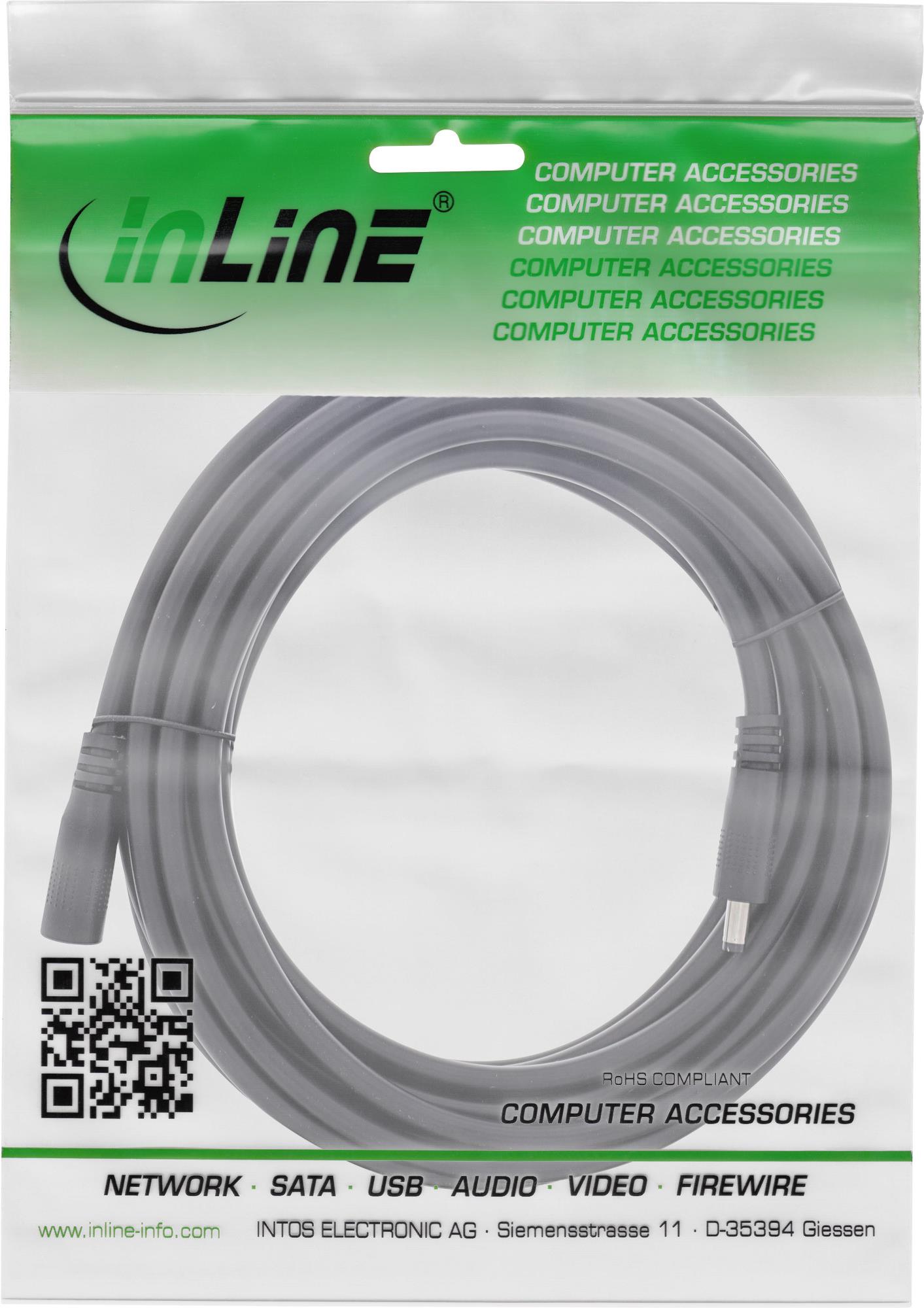 InLine DC Verlängerungskabel - DC Stecker/Buchse 4,0x1,7mm - AWG 18 - schwarz 5m (26905C)