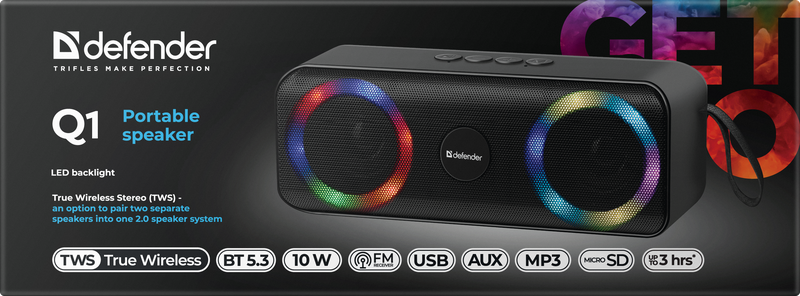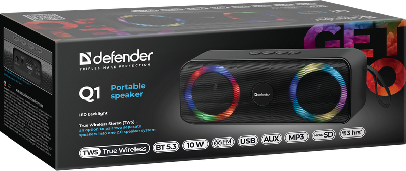 Defender Q1 Tragbarer Stereo-Lautsprecher Schwarz 10 W (65301)