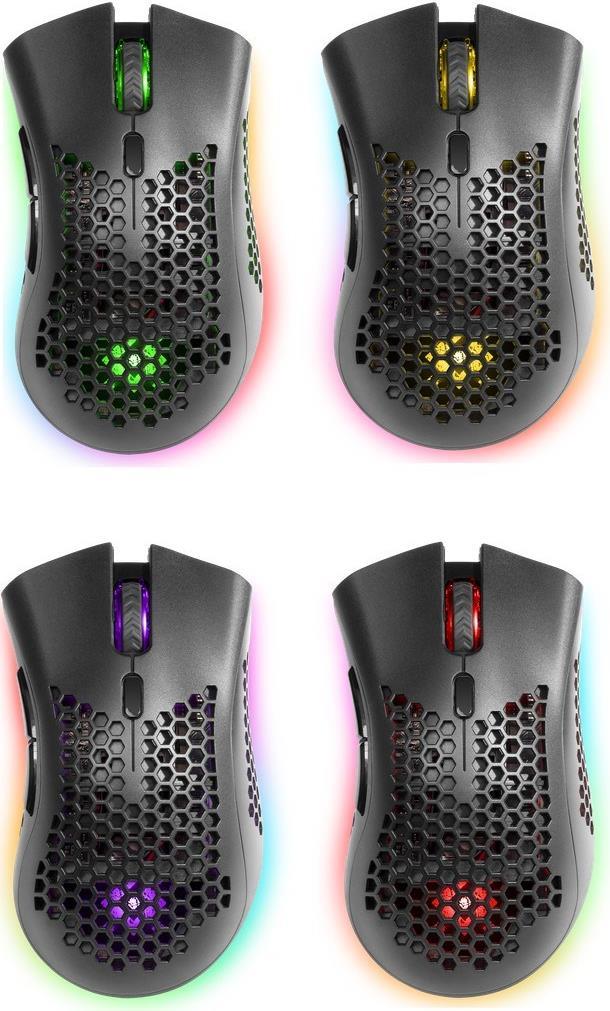 Wireless gaming mouse, lightweight, comfortable shape, RGB backlight. Built-in 400mAh battery.