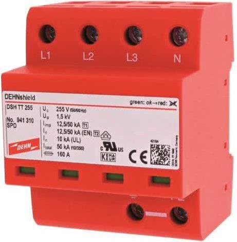 Anschlussfertiger, anwendungsoptimierter Kombi-Ableiter für TT- und TN-S-Systeme mit 230 / 400 V Nennspannung (3+1-Schaltung). Anschlussfertiger, anwendungsoptimierter Kombi-Ableiter Typ 1 + Typ 2 auf ...