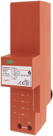 Kombi-Ableiter für TT- und TN-S-Systeme zum Einsatz im Hauptstromversorgungssystem (3+1-Schaltung) bei Wohngebäuden ohne äußeren Blitzschutz (auch mit Freileitungseinspeisung). Kombi-Ableiter Typ 1 + Typ 2 mit ...
