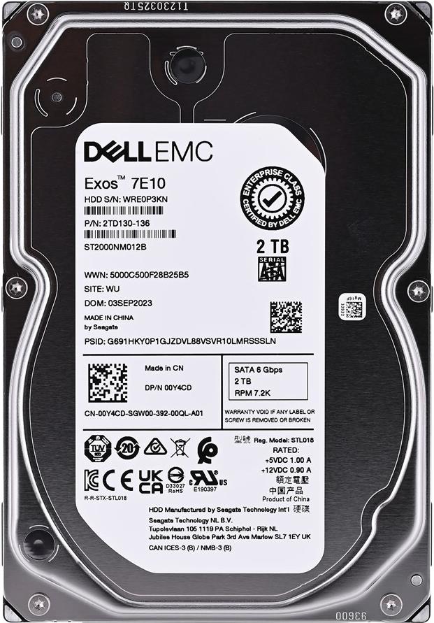 DELL 2TB 7.2K U/min SATA 6Gbps 512n 3.5" Cabled Hard Drive CK (400-AUST)