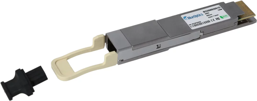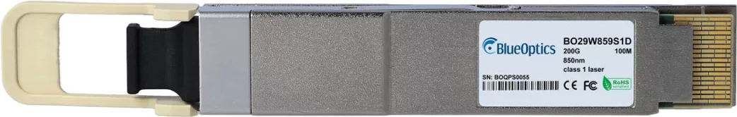 Dell 407-BCBM kompatibler BlueOptics© QSFP-DD Transceiver für Multimode 200 Gigabit Highspeed Datenübertragungen in Glasfaser Netzwerken. Unterstützt 200 Gigabit Ethernet Anwendungen in Switchen, Routern, Storage Systemen und ähnlicher Hardware. BlueOptic (407-BCBM-BO)