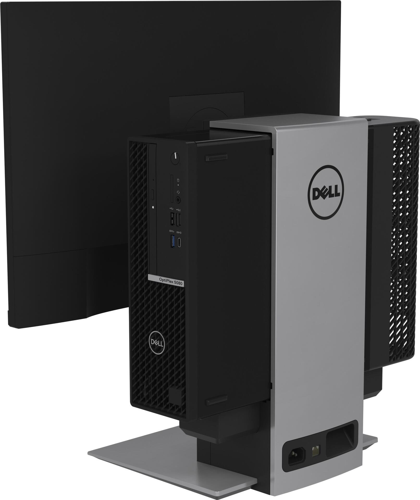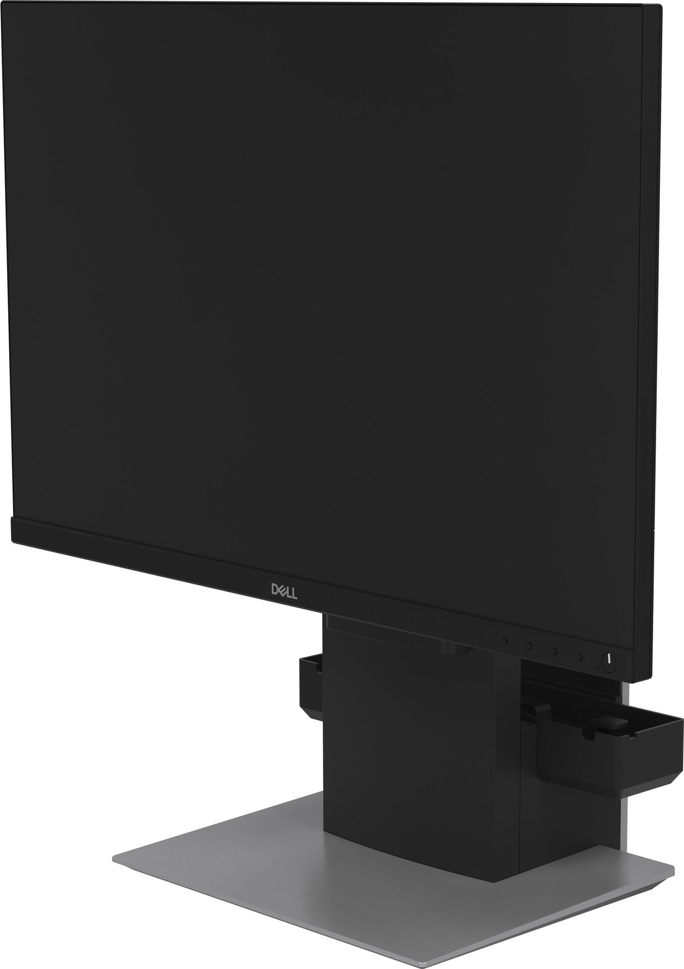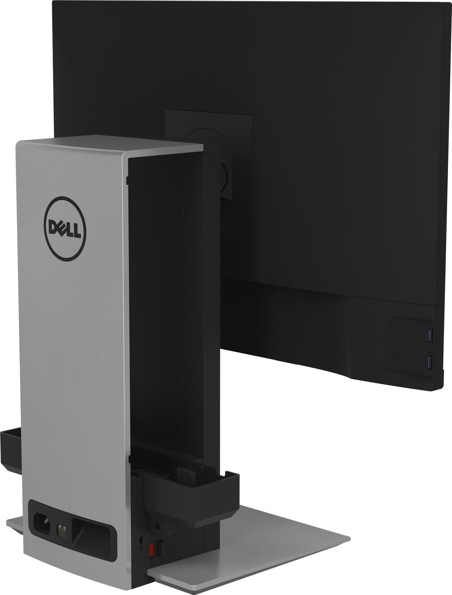 Schaffen Sie mehr Platz auf Ihrem Schreibtisch mit dem Dell Small-Form-Factor-All-in-one-Ständer - OSS21. Der kompakte Ständer nimmt den OptiPlex/Precision-SFF-Desktop und den Monitor auf und spart so Platz. Der Ständer kann individuell eingestellt werden, sodass Sie den Monitor nach Belieben ausrichten können. Er eignet sich für Dell UltraSharp-Monitore und Monitore der P Serie mit Dell Quick Release sowie VESA-konforme Monitore der E Serie von 19" bis 27". Mit der mitgelieferten VESA-Adapterplatte können Sie den Dell Monitor der E Serie oder VESA-kompatiblen Monitor montieren.