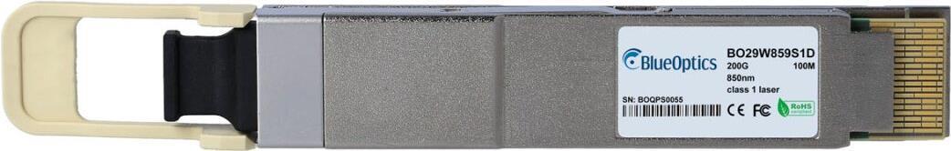Dell PC4JJ kompatibler BlueOptics© QSFP-DD Transceiver für Multimode 200 Gigabit Highspeed Datenübertragungen in Glasfaser Netzwerken. Unterstützt 200 Gigabit Ethernet Anwendungen in Switchen, Routern, Storage Systemen und ähnlicher Hardware. BlueOptics Q (PC4JJ-BO)
