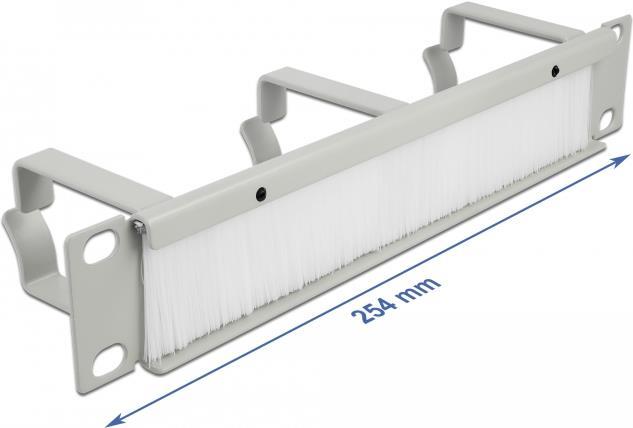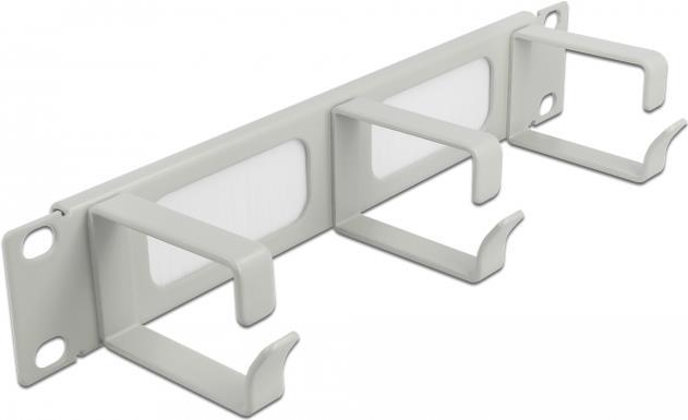 Delock Cable Management Brush Strip with 3 hooks - Kabelführungspanel mit Bürste - Grau - 1U - 25,4 cm (10") (66541)