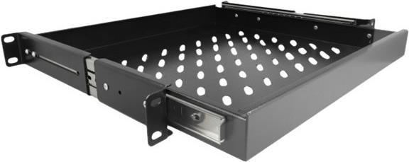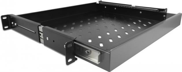 Diese ausziehbare Schublade von Delock kann in einen 19" Geräteschrank eingebaut werden. Die beiden an den Seiten montierten und kugelgelagerten Auszüge sorgen für eine minimale Bauhöhe und ein sanftes Gleiten der Schublade.