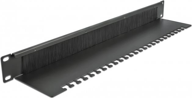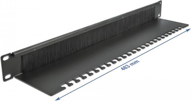 DeLOCK Cable Management Brush Strip with Cable Support Plate - Kabelführungspanel mit Bürste - Schwarz - 1U - 48,3 cm (19") (66484)
