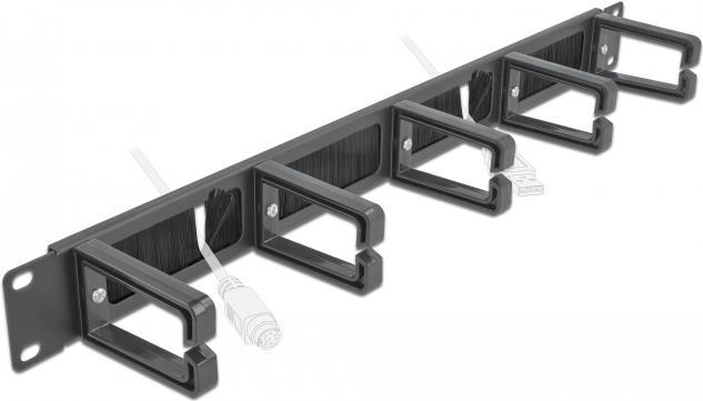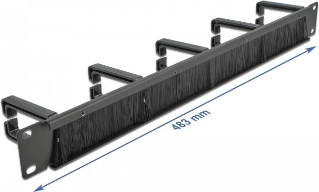 DeLOCK Cable Management Brush Strip with 5 hooks - Kabelführungspanel mit Bürste - Schwarz - 1U - 48,3 cm (19") (66490)