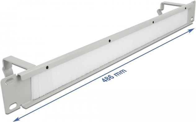 Delock Cable Management Brush Strip with 2 hooks - Kabelführungspanel mit Bürste - Grau - 1U - 48,3 cm (19") (66540)