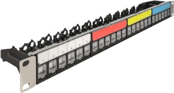 Delock - Leeres Keystone-Patchpanel - Schrankmontage - Schwarz - 1U - 48,3 cm (19") - 24 Ports (66921)