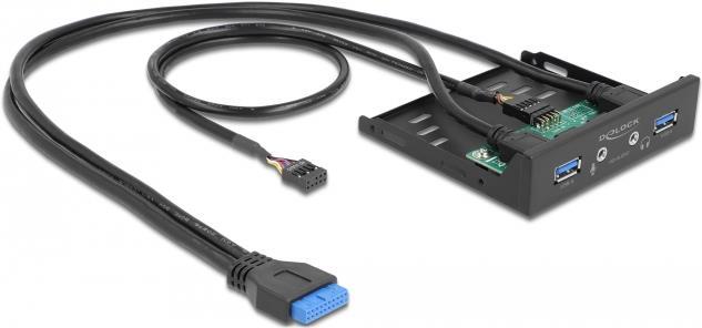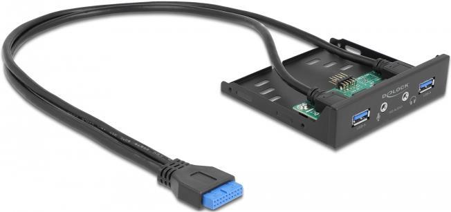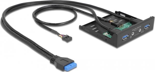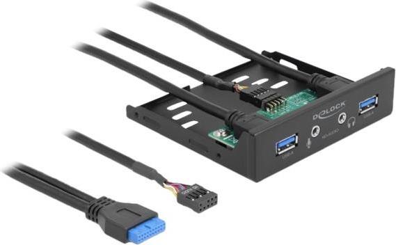 Delock - Anschlüsse am vorderen Bedienfeld des Speicherschachts - Audio x 1, Mic x 1, USB 3,2 Gen 1 x 2 - Schwarz (64150)