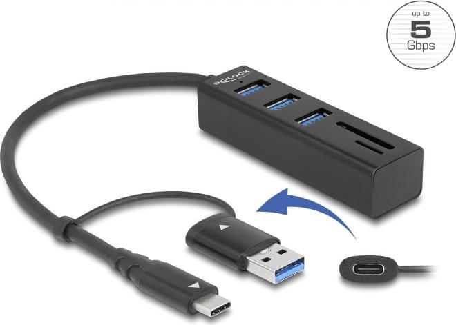 Dieser stabile USB Hub von Delock im Metallgehäuse wird an einen Computer, Notebook oder Mobilgerät, über den USB Typ-A oder USB-C Anschluss, angeschlossen. Es können bis zu 3 USB Geräte mit dem Hub verbunden werden.