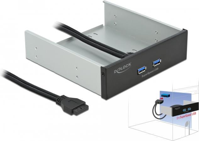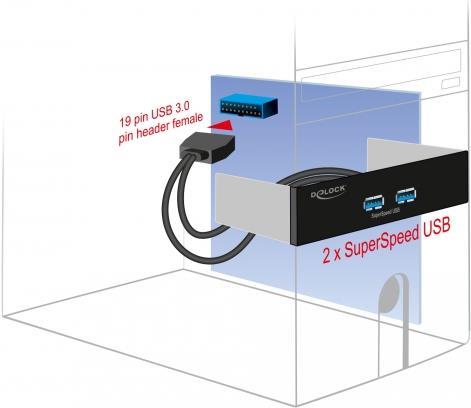 DeLOCK - Anschlüsse am vorderen Bedienfeld des Speicherschachts - USB 3,2 Gen 1 x 2 - Schwarz (61005)