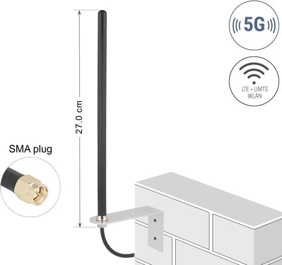 Die Delock-Antenne wurde entwickelt, um die Konnektivität in verschiedenen Netzwerken zu verbessern, und unterstützt UMTS, GSM, LTE und 5G. Diese omnidirektionale Antenne verfügt über einen Frequenzbereich von 600 bis 960 MHz und 1710 bis 3800 MHz und eignet sich somit für zahlreiche Anwendungen, darunter Mobilfunk- und WLAN-Kommunikation. Mit einer Verstärkung von 3 bis 5 dBi verbessert die Antenne den Signalempfang und gewährleistet eine zuverlässige Kommunikation für Smart-Home-Geräte und Bluetooth-Anwendungen. Das praktische Design zur Wandmontage sowie das 3 m lange RG-174-Anschlusskabel ermöglichen eine einfache Installation in verschiedenen Außenbereichen. Diese vielseitige Antenne hat eine Impedanz von 50 Ohm und ein Stehwellenverhältnis (VSWR) von 2,0:1, wodurch die Kompatibilität mit verschiedenen Gerätetypen gewährleistet ist. Das robuste TPE-Material sorgt für Langlebigkeit unter verschiedenen Umgebungsbedingungen, während die lineare vertikale Polarisation eine optimale Leistung bietet. Ob zur Verbesserung der Hausautomation oder zur Erweiterung der Konnektivität – die Delock-Antenne ist eine zuverlässige Wahl für Anwender, die nach effektiven Wireless-Lösungen suchen.