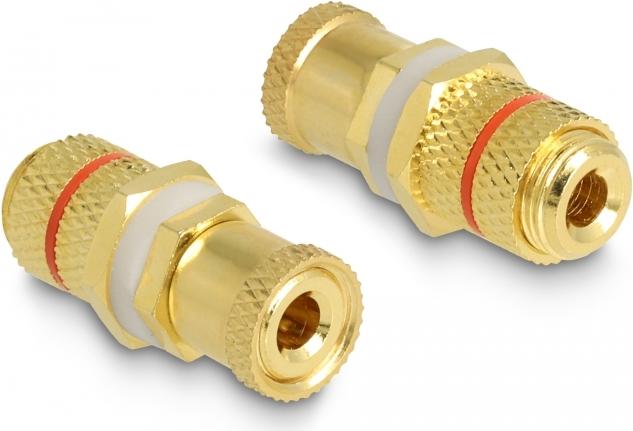 Delock - Audio-Adapter - Binding Post bis Binding Post - Gold, roter Ring (64145)