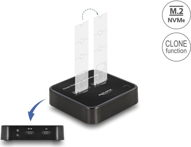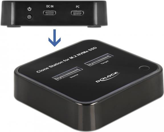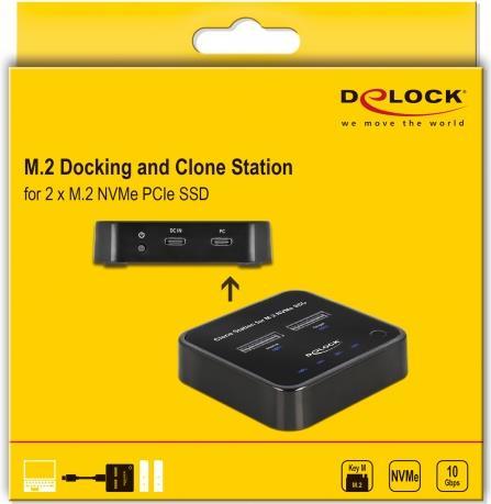 Delock - SSD-Dockingstation mit Klon-Funktion Schächte: 2 - M.2 - M.2 NVMe Card - USB 3,2 (Gen 2) - Schwarz (64177)
