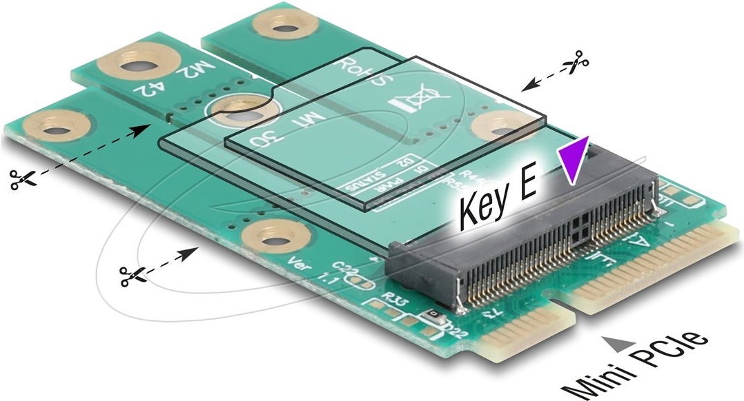 Der Delock-Schnittstellenadapter erleichtert interne Verbindungen, indem er einen Mini-PCIe-Steckplatz in einen M.2-Key-E-Steckplatz umwandelt. Er unterstützt verschiedene M.2-Formfaktoren, darunter 2230, 2242, 3030 und 3042, und ist somit für verschiedene Arten von Solid-State-Laufwerken geeignet. Dieser Adapter wird mit einem Montagesatz geliefert, der eine nahtlose Installation für Benutzer gewährleistet, die ihre Geräte mit zusätzlichen Speicheroptionen aufrüsten möchten.