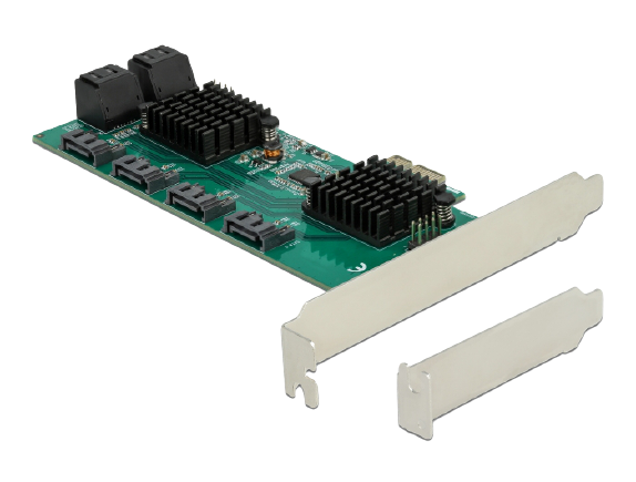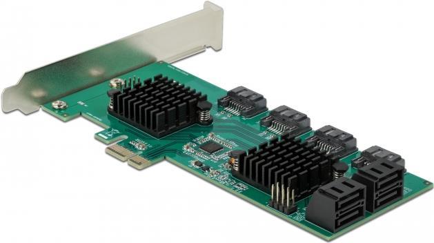 Die PCI Express Karte von Delock erweitert den PC um acht interne SATA Ports. An dieser Karte können verschiedene Geräte wie z. B. SSDs, Festplatten, DVD-Laufwerke etc. angeschlossen werden.