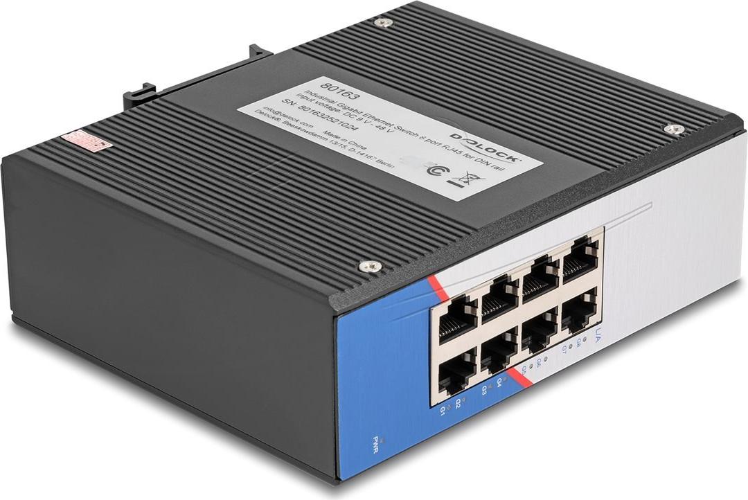 Der Delock 80163 ist ein Gigabit-Ethernet-Switch in Industriequalität, der für robuste Leistung in anspruchsvollen Umgebungen entwickelt wurde. Mit einer Temperaturunterstützung von -40 °C bis 85 °C gewährleistet er einen zuverlässigen Betrieb unter extremen Bedingungen. Der Switch verfügt über ein lüfterloses Design und ein robustes Metallgehäuse, wodurch er für verschiedene industrielle Anwendungen geeignet ist.