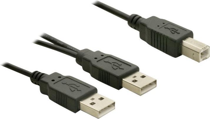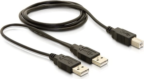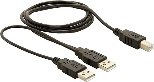Mit diesem USB 2.0 Y-Kabel von Delock können Sie Geräte wie z.B. externe Gehäuse über zwei freie USB Ports mit Strom versorgen und Daten übertragen.
