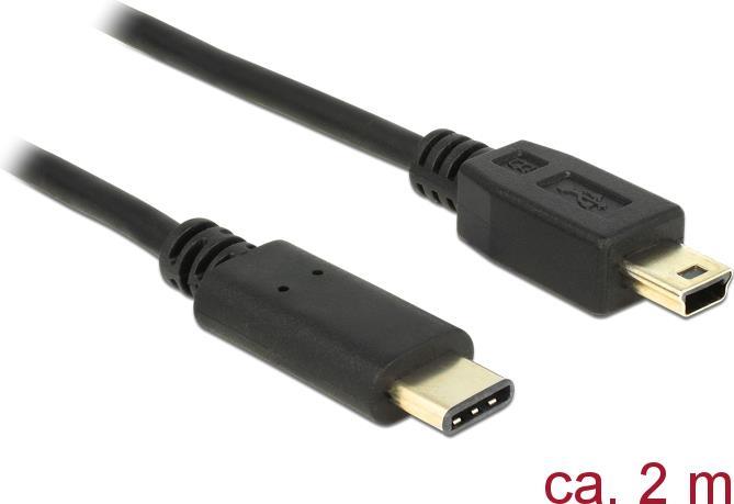 DeLOCK - USB-Kabel - USB-C (M) bis mini-USB Typ B (M) - USB 2.0 - 500 mA - 2 m - Schwarz