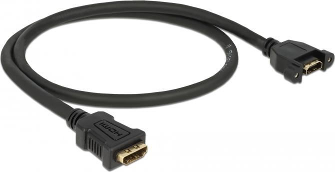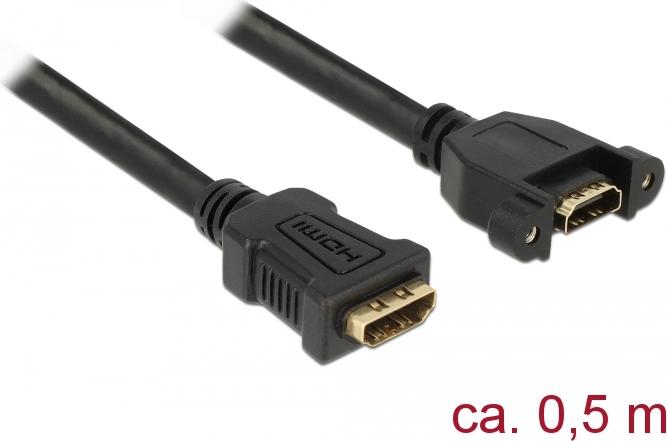 DeLOCK - HDMI mit Ethernetkabel - HDMI (W) bis HDMI (W) schraubbar - 50cm - Schwarz - 4K Unterstützung (85465)