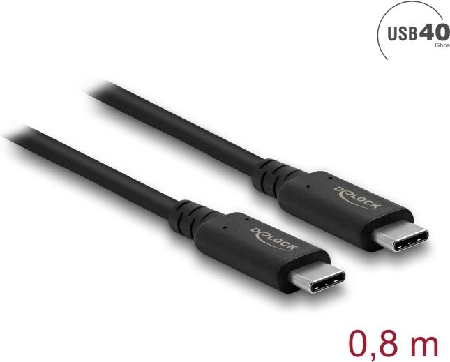 Delock - USB-Kabel - USB-C (M) bis USB-C (M) - USB4 / Thunderbolt 3 / DisplayPort - 20 V - 5 A - 80 cm - unterstützt Power Delivery 3.0, unterstützt 8K 60 Hz (7680 x 4320), unterstützt 5K 120 Hz (5120 x 2880), unterstützt 4K 240 Hz (3840 x 2160) - Schwarz