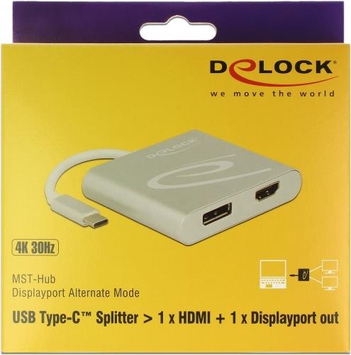 DeLOCK 87716 Videokabel-Adapter 0,1 m USB Typ-C HDMI + DisplayPort Silber (87716)