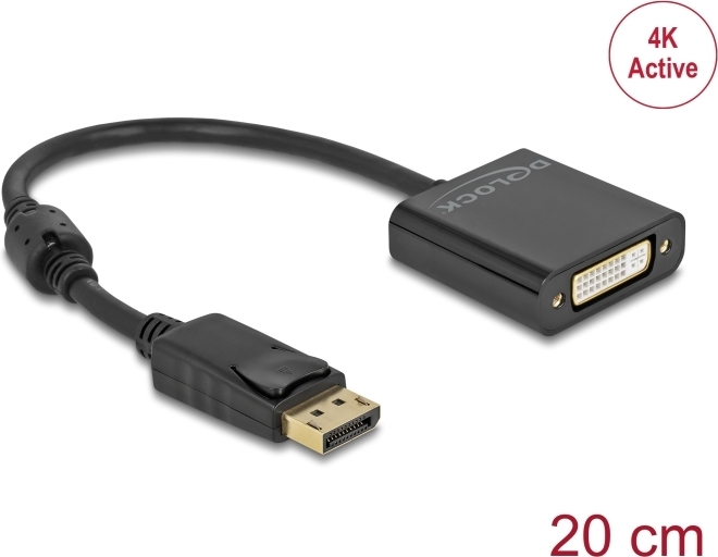 Delock - Videoadapter - Single Link - DisplayPort (M) bis DVI-I (W) - DisplayPort 1,2 - 20cm - 4K Unterstützung, aktiv - Schwarz (63482)