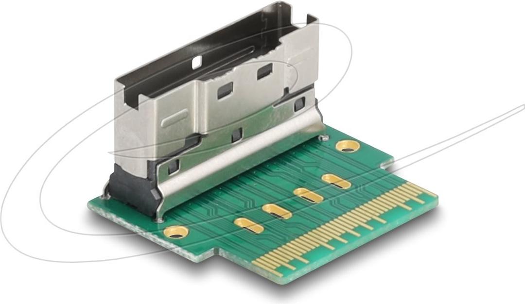 Der Delock 64179 Schnittstellenadapter ist eine zuverlässige Lösung für den kompakten Anschluss von SAS-Geräten. Mit seinem um 90° abgewinkelten Design verbessert dieser Adapter das Kabelmanagement und hilft, den Platz in Ihrem System zu optimieren. Er verfügt über einen 8i Slim SAS-Anschluss für die bereitgestellte und erforderliche Schnittstelle und gewährleistet so die Kompatibilität mit SAS-Komponenten. Dieser interne Adapter unterstützt PCIe 4.0 und bietet effiziente Leistung für Ihre Speicher-Controller-Anforderungen.