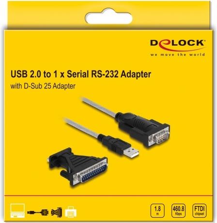 Delock - USB / Serienkabel-Set - USB / USB2.0 / EIA-232 - Daumenschrauben - Schwarz, durchsichtig (61314)