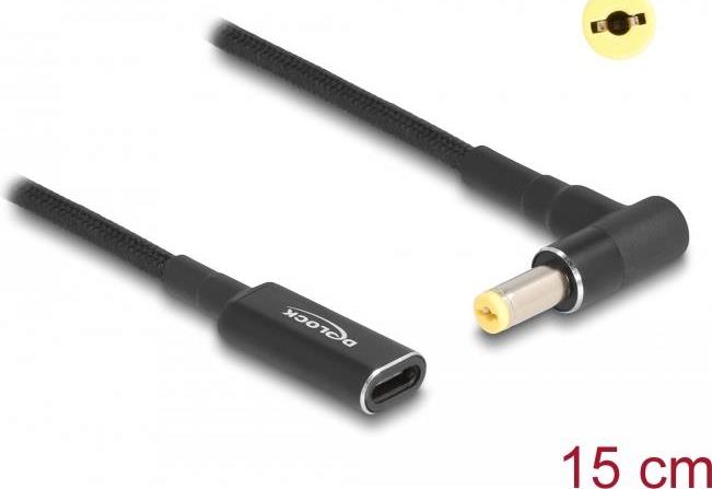 Delock - Adapter für Power Connector - USB-C (nur Spannung) (W) zu Gleichstromstecker 5,5 x 1,7 mm (M) gewinkelt - 19.5 V - 3 A - 15 m - Schwarz (60038)