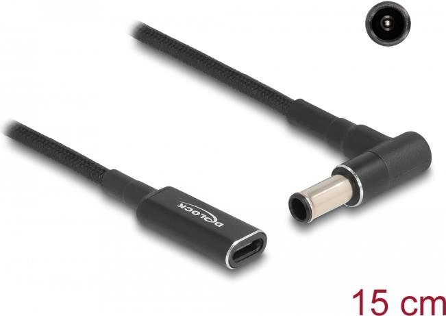 Delock - Netzteil - 24 pin USB-C (W) zu Gleichstromstecker 6,0 x 4,3 mm (M) gewinkelt - 19.5 V - 3 A - 15 cm - Schwarz (60043)