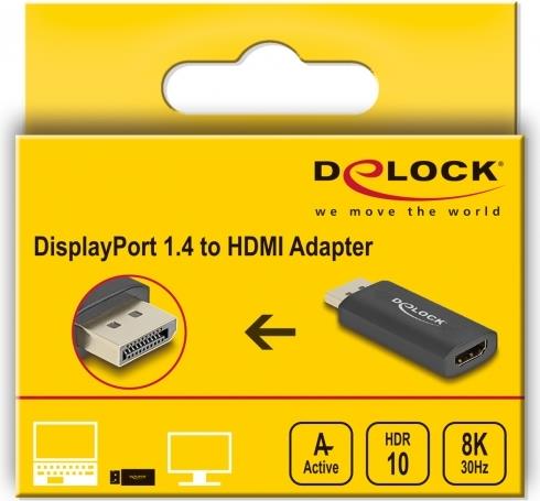 Delock - Videoadapter - DisplayPort männlich zu HDMI weiblich - Schwarz - aktiv, HDR10-Support (61055)