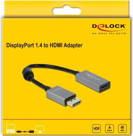 Mit diesem Adapter von Delock kann ein HDMI Monitor über eine freie DisplayPort Schnittstelle an ein System angeschlossen werden. Der Adapter unterstützt eine Auflösung bis 4K Ultra HD bei 60 Hz und ist abwärtskompatibel zu Full-HD 1080p.