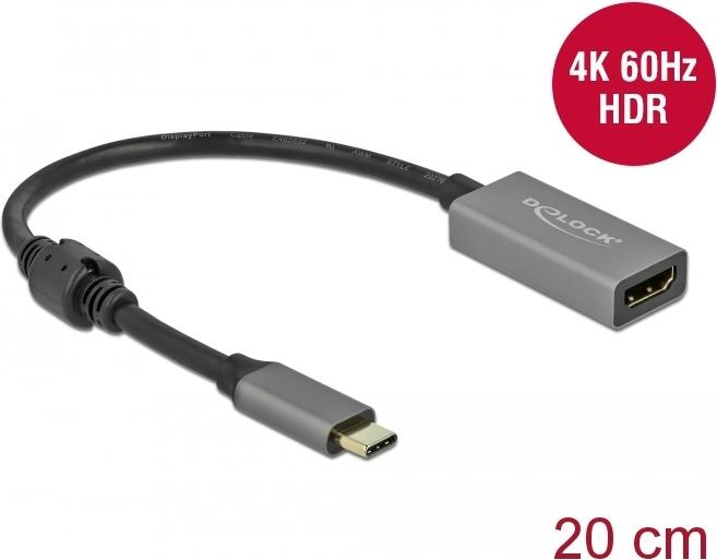 Delock - High Speed - Videoadapter - 24 pin USB-C männlich zu HDMI weiblich - 20cm - Grau, Schwarz - aktiv (66571)