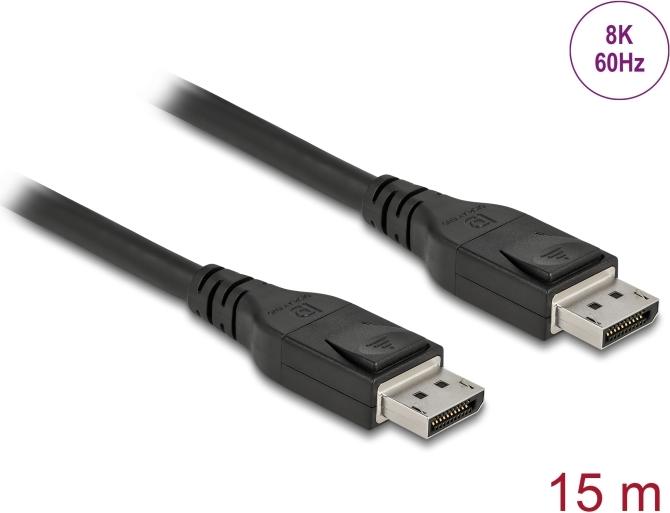 Delock - DisplayPort-Kabel - DisplayPort (M) zu DisplayPort (M) - DisplayPort 1,4 - 15,0m - aktiv, unterstützt 8K 60 Hz (7680 x 4320), unterstützt 5K 120 Hz (5120 x 2880), unterstützt 4K 240 Hz (3840 x 2160) - Schwarz (85504)
