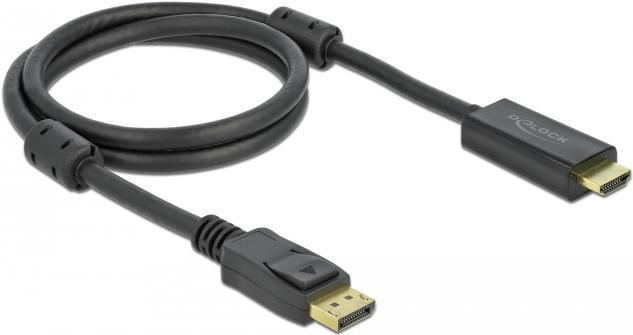 Delock - Adapterkabel - DisplayPort männlich Verriegelung zu HDMI männlich - 1,0m - Dreifachisolierung - Schwarz - 4K Unterstützung, aktiv (85955)