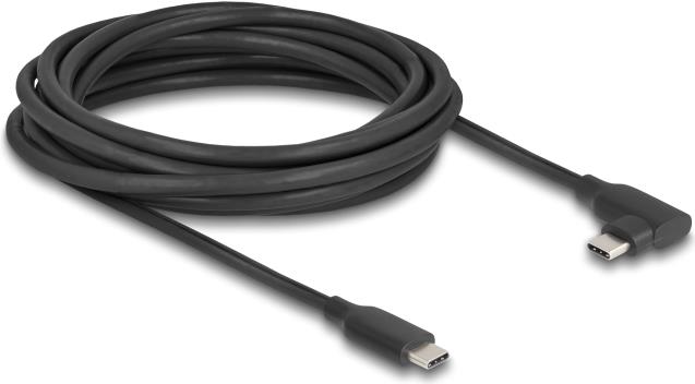 Delock - USB-Kabel - 24 pin USB-C (M) gerade zu 24 pin USB-C (M) links/rechts abgewinkelt - 3 A - 5,0m - aktiv, E-marker, bis zu 10 Gbps Datentransferrate, USB Power Delivery (60W), Support von 8K 60 Hz - Schwarz (81196)