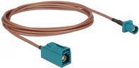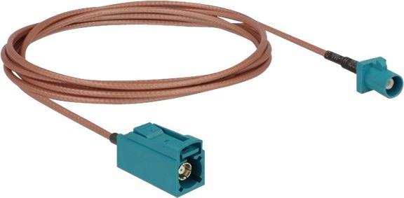 | Technische Merkmale | 1 x FAKRA Z Buchse 1 x FAKRA Z Stecker FAKRA Z: RAL 5021 Wasserblau Kabelart: koaxial Kabeldämpfung: 2 dB @ 2,4 GHz pro Meter Kabeldurchmesser: 2,6 mm Kleinster Biegeradius: 10,5 mm |